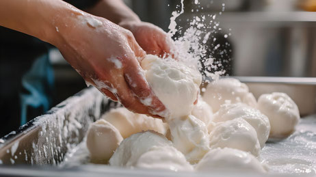 Elaboramos mozzarella fresca de forma artesanal siguiendo la receta de un cocinero napolitano que conocemos para